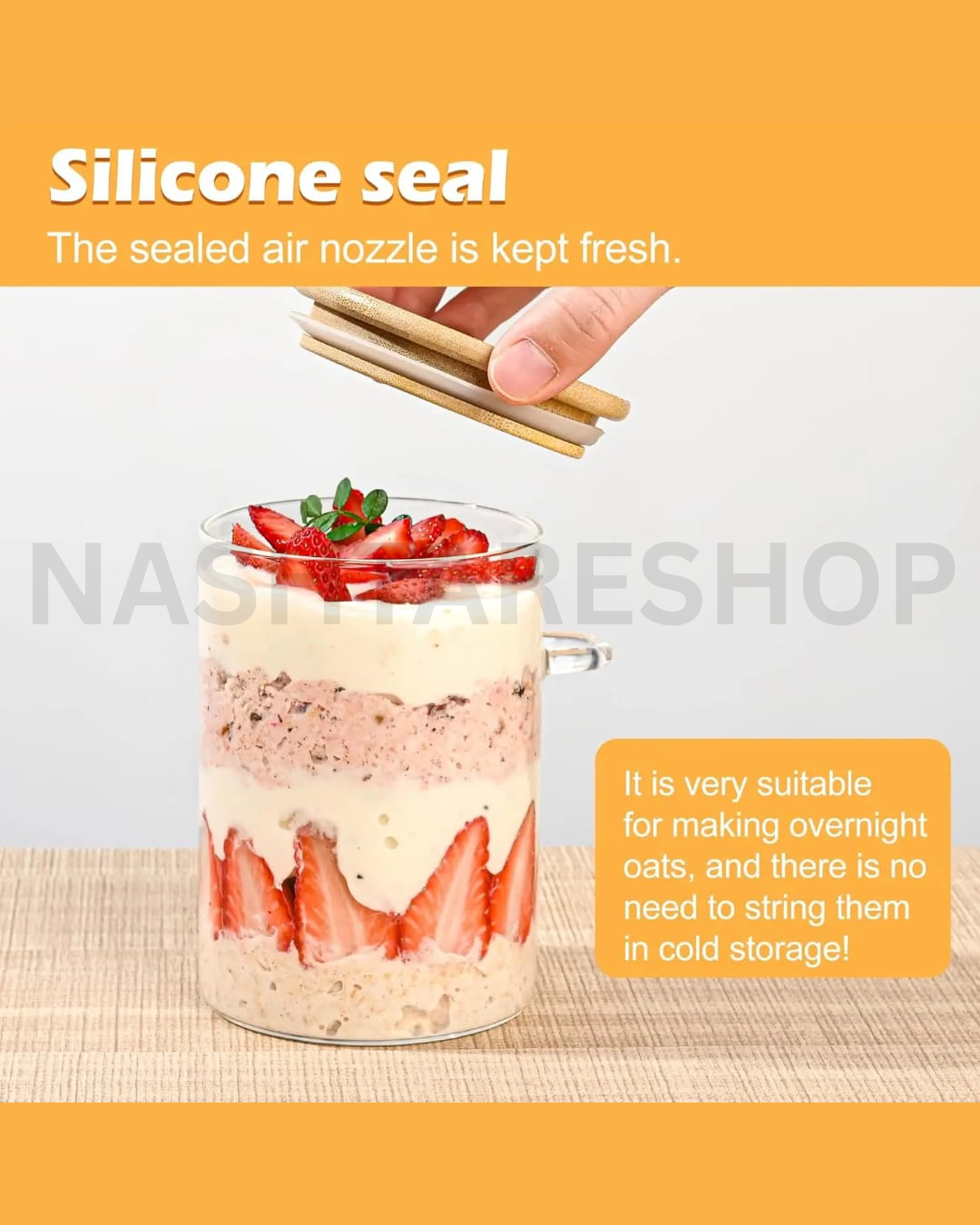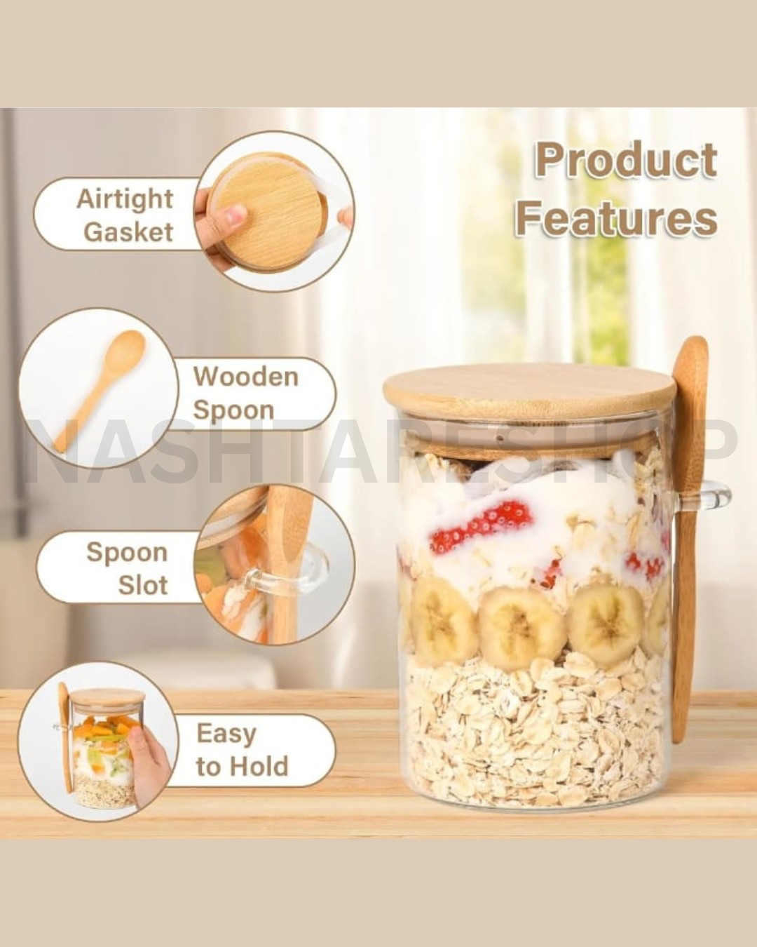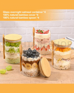 • Material: Borosilicate glass + wooden lid + wooden spoon