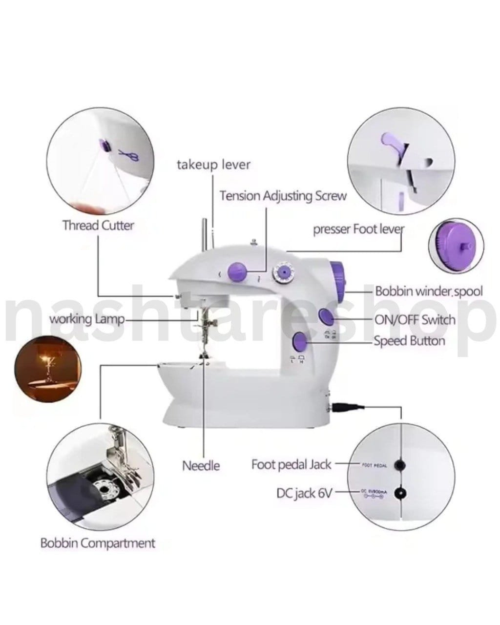 The Portable Mini Sewing Machine with LED Light and Foot Pedal (Model SM-202A) is the perfect choice for teens, beginners, and sewing enthusiasts. Compact yet powerful, it’s designed for crafting, basic sewing, and home decoration projects. Featuring double operation modes—via On/Off button or foot pedal—it offers adjustable sewing speed, an auto-declutch bobbin winder, reverse stitch function, and precise thread tension control. Equipped with built-in LED lighting and a thread cutter, it ensures precise and convenient sewing every time. With dual power options and a lightweight design, it’s easy to carry and use anywhere.