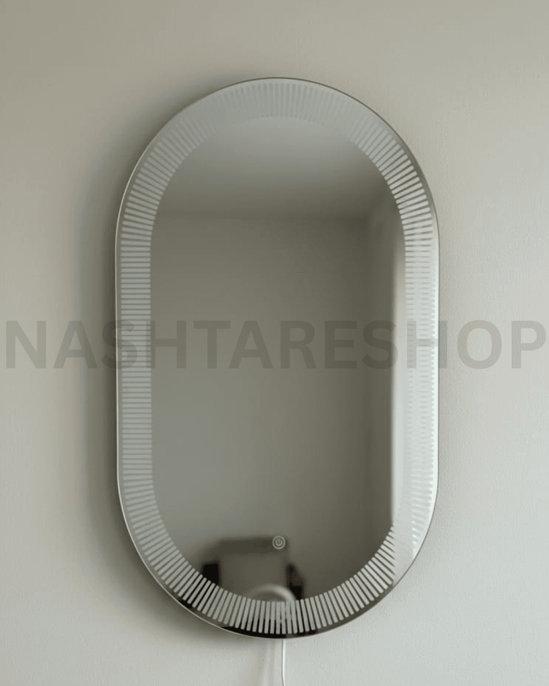 A stylish oval-shaped mirror featuring warm white LED lighting around the edge. Perfect for bedrooms, bathrooms, or dressing areas, this mirror combines elegance with practical illumination for daily use.